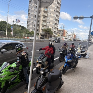 バイク仲間に挨拶をし