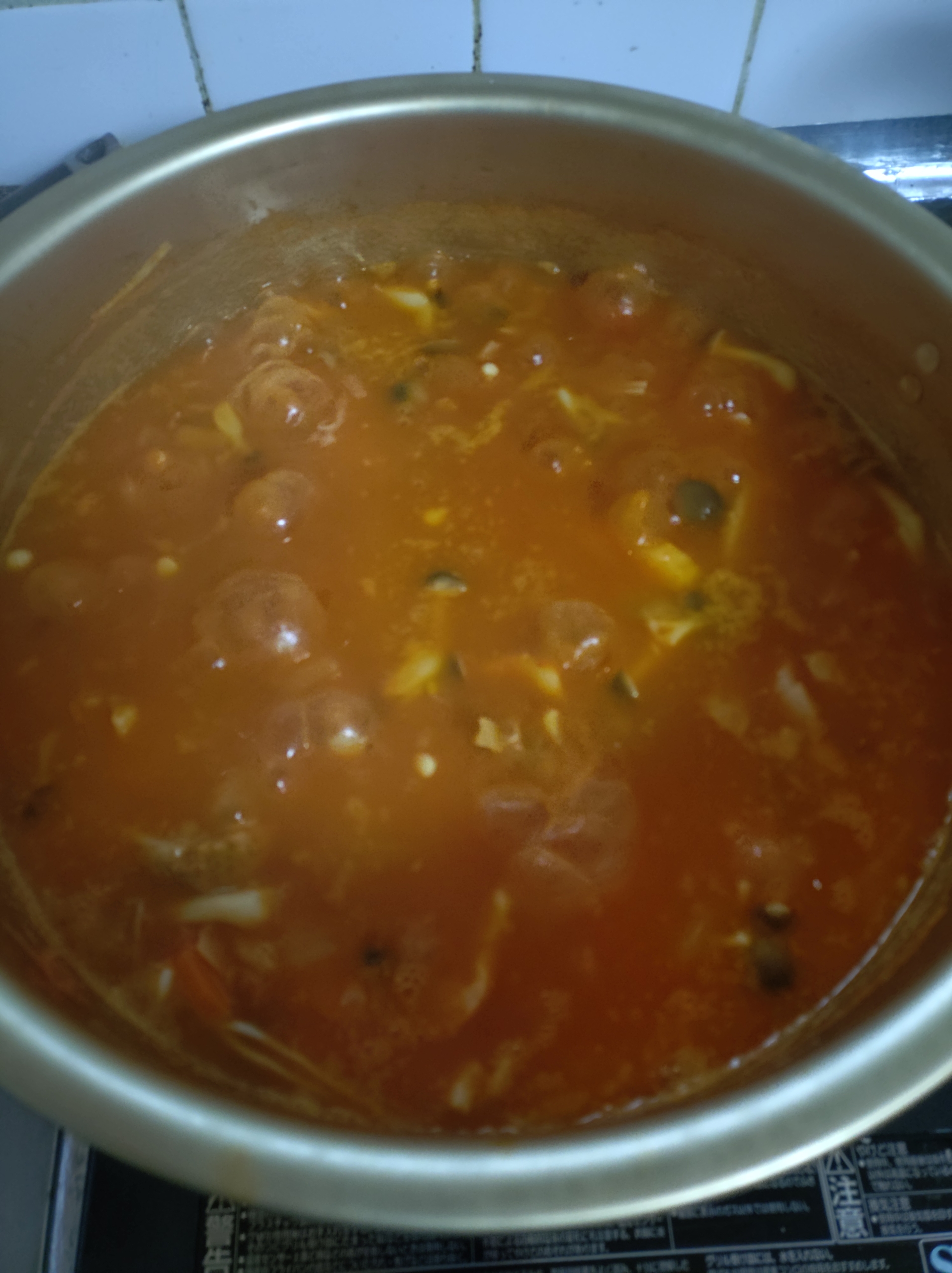 グツグツにたってきたら、トマトと相性抜群の麦飯石の水を入れます✌ 調味料で味を調えて・・・・・完成✨