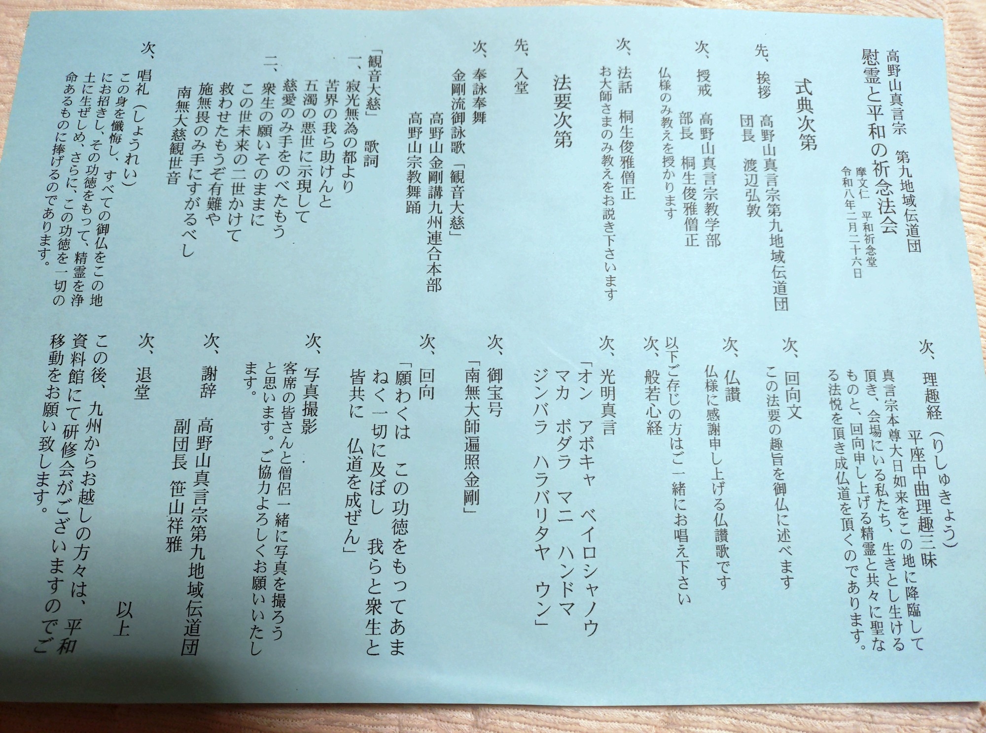 新垣は平和祈念堂で九州の高野山真言宗の方と祈ってきました。